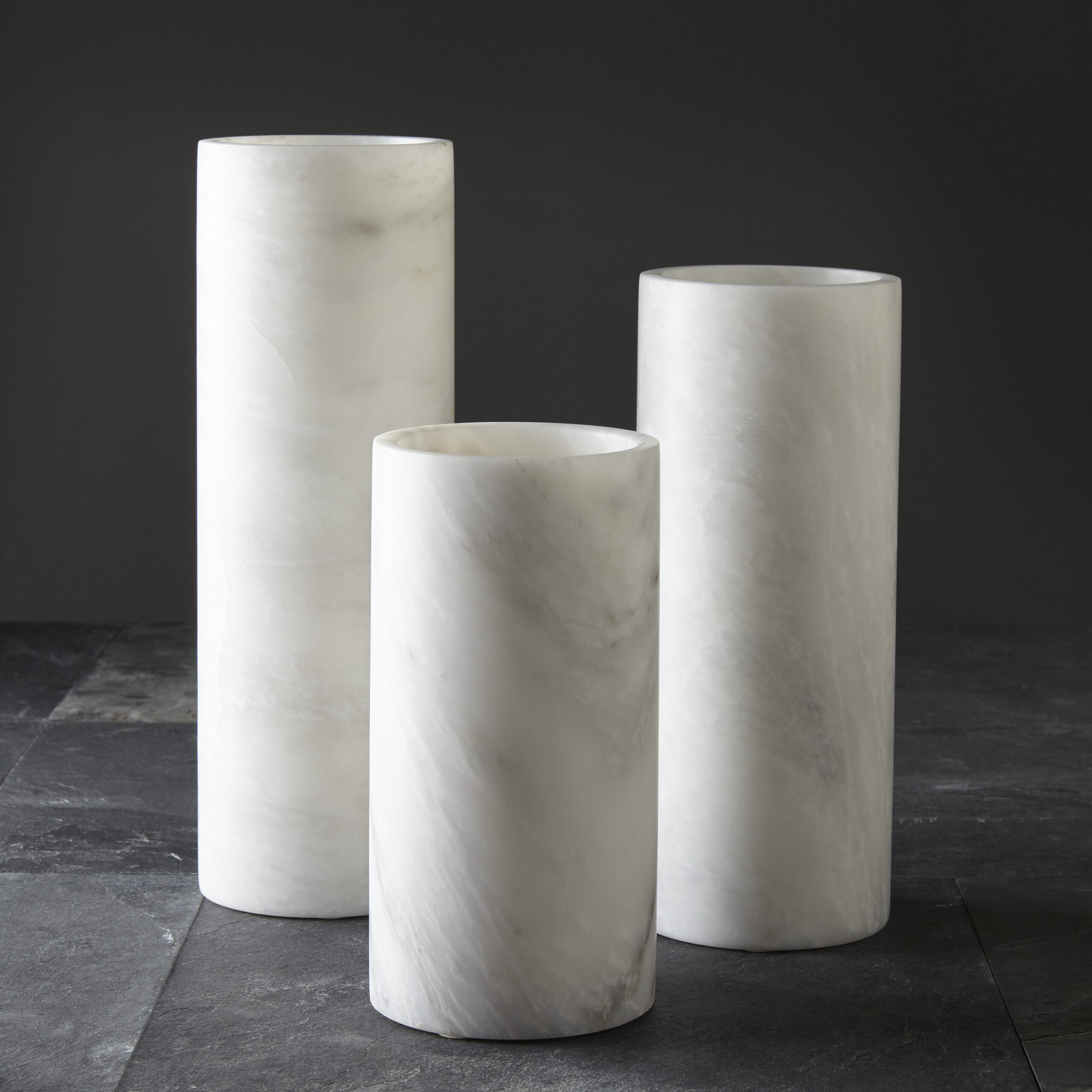 Chloris Collection Pearl White Marble 10" Honed Finish Cylinder VaseChloris Collection Pearl White Marble 10″ Honed Finish Cylinder Vase
